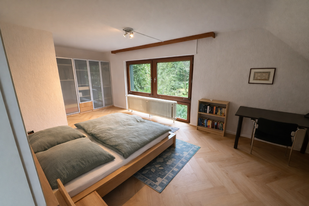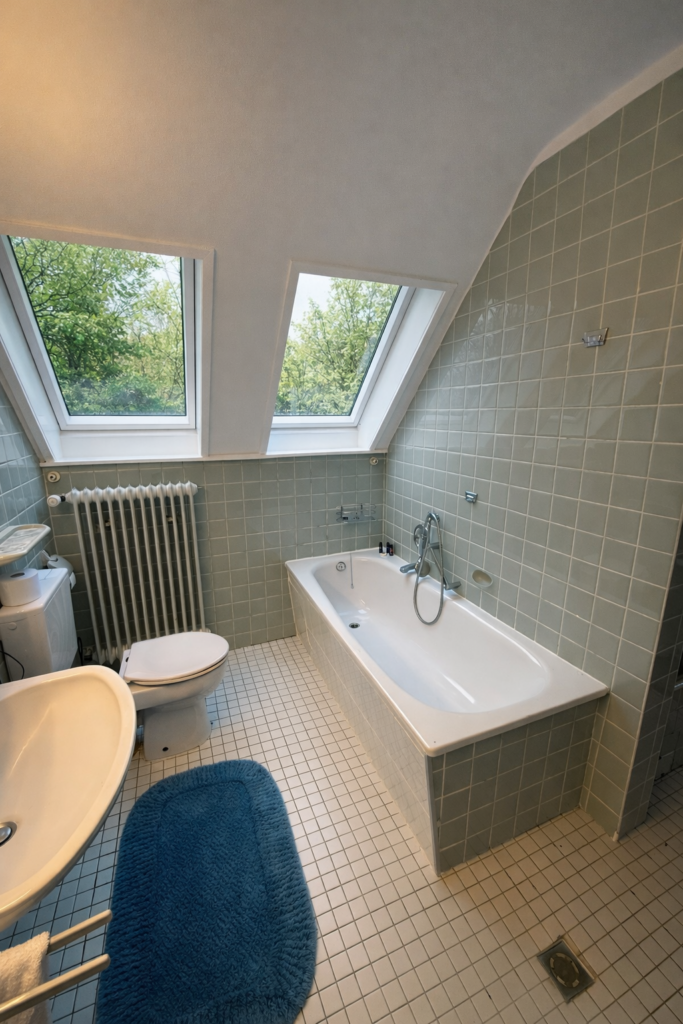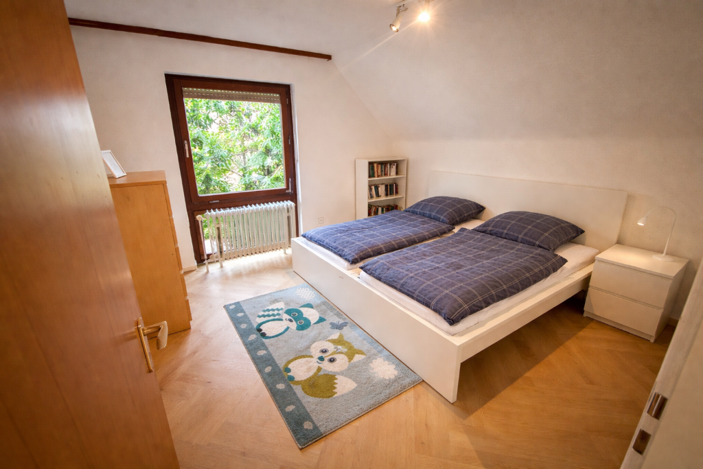 Zwei weitere Schlafzimmer verfügen jeweils über zwei separate Einzelbetten. Zusätzlich stehen ein weiteres Badezimmer mit Dusche und WC, sowie ein Gäste-WC zur Verfügung.