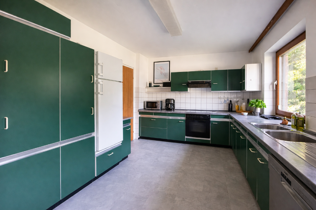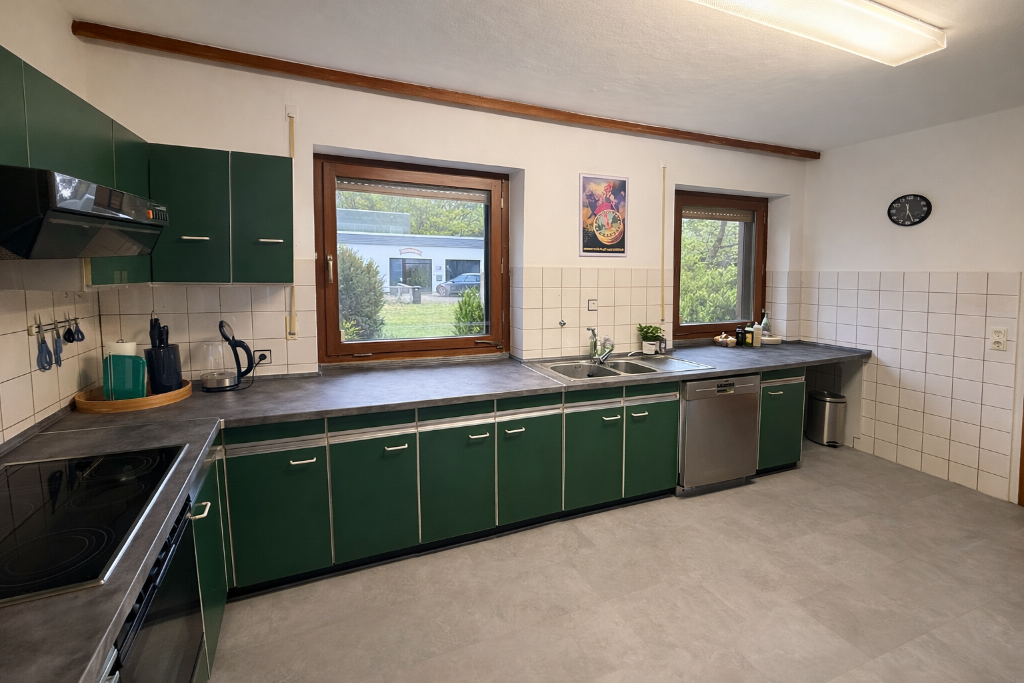 Die großzügige Küche ist voll ausgestattet. Fernsehen erfolgt über Satelliten-TV.